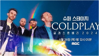 MBC '슈퍼 스테이지: 콜드플레이 글래스톤베리 2024' 실황이 오는 6월 26일 목요일 밤 12시 5분에 전격 방송됩니다.
